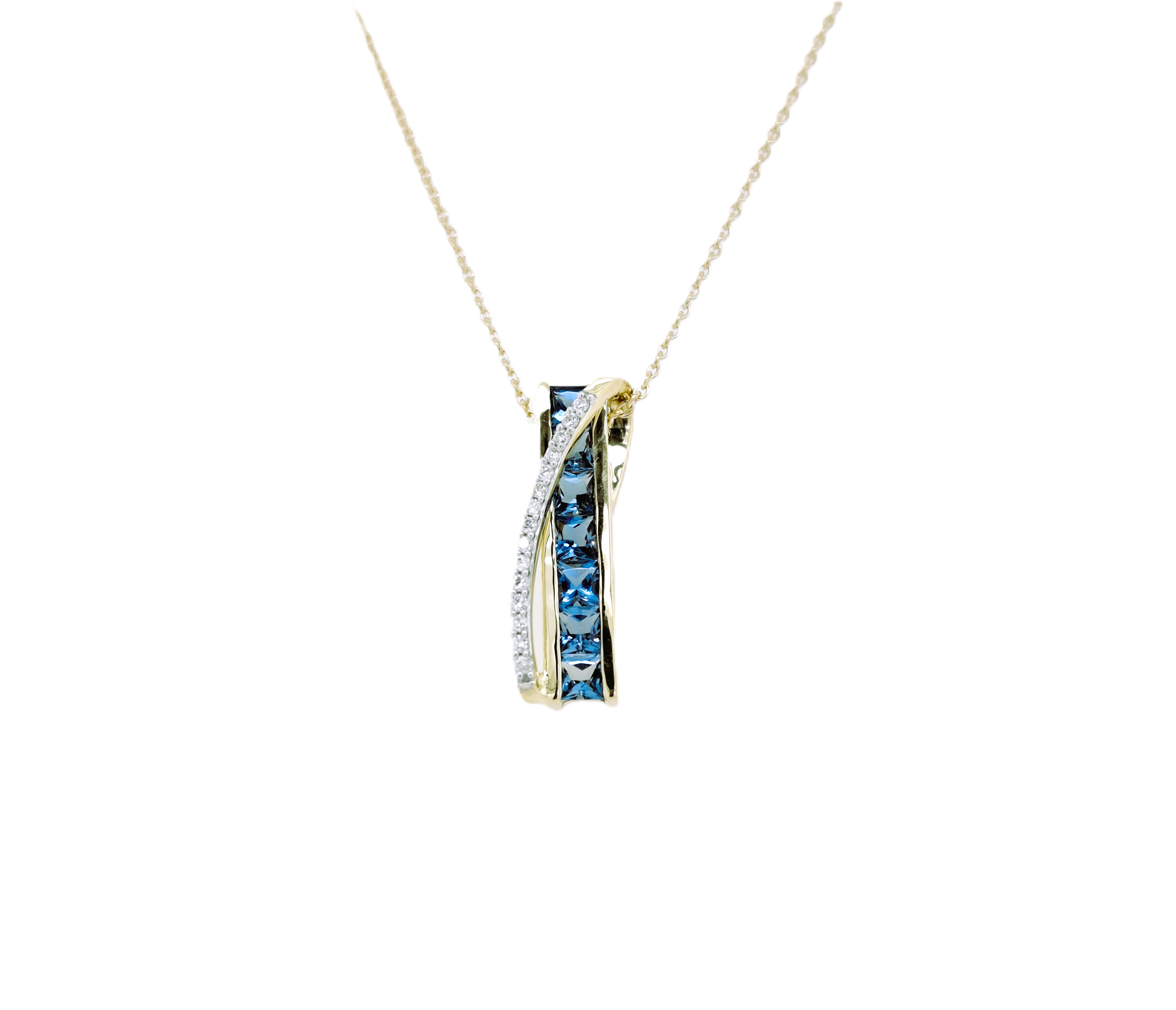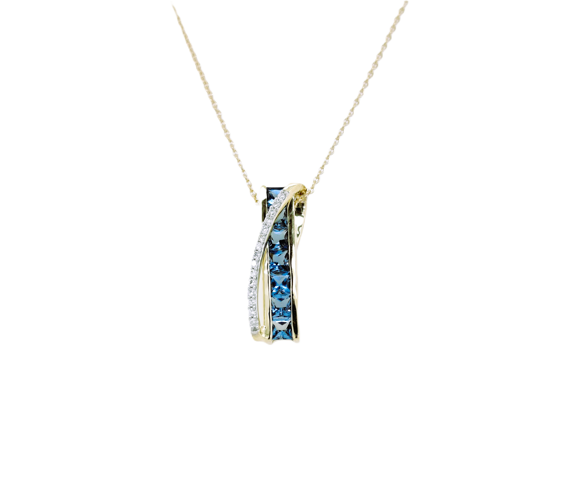 Yellow Gold Diamond & London Blue Topaz Pendant