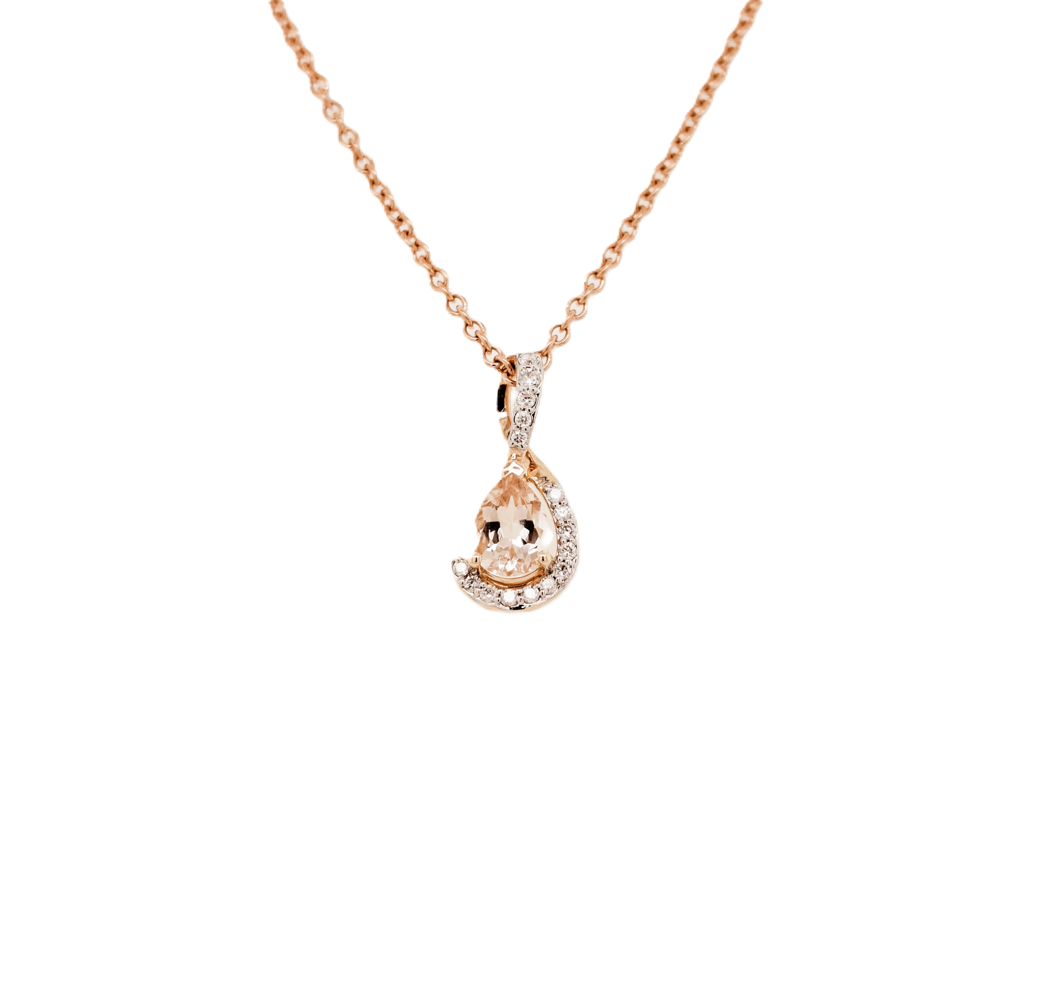 9ct rose gold diamond and morganite set pendant.