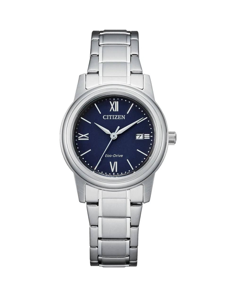 A popular design, this simple and elegant women’s business/dress style will take you from day to evening. Characterised by a simple and clean design, the band is brushed stainless steel bracelet surrounding a 30mm silver stainless steel case and a stunning dark blue brass dial finish providing an elegant touch. Topped with mineral crystal glass. Enhanced with Eco-Drive technology which allows your battery to self-charge from any light source, you can also use this model for swimming and snorkelling as it is water resistant to WR100/10 bar. A reliable timepiece with a classic design, a watch for every occasion. Additional features include 3 hands and date. Calibre J710.