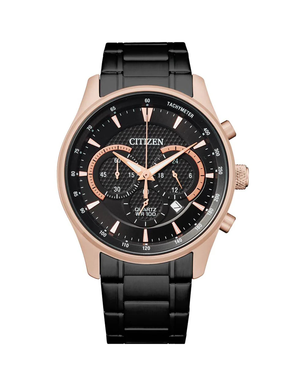 Outfitted with chronograph precise to within a second throughout a 60 minute period, tachymeter for next level accuracy and a reliable Quartz movement mechanism, this is a watch that works as hard as you do. For enhanced performance it offers a 2 year battery life, uncomplicated markings, date display and 12 and 24 hour time dials. Crafted from rugged stainless steel and black ion plating that imbues the watch with seductive black and gold tones and a sophisticated aesthetic, it is the ideal watch for the office or hitting the town with friends.