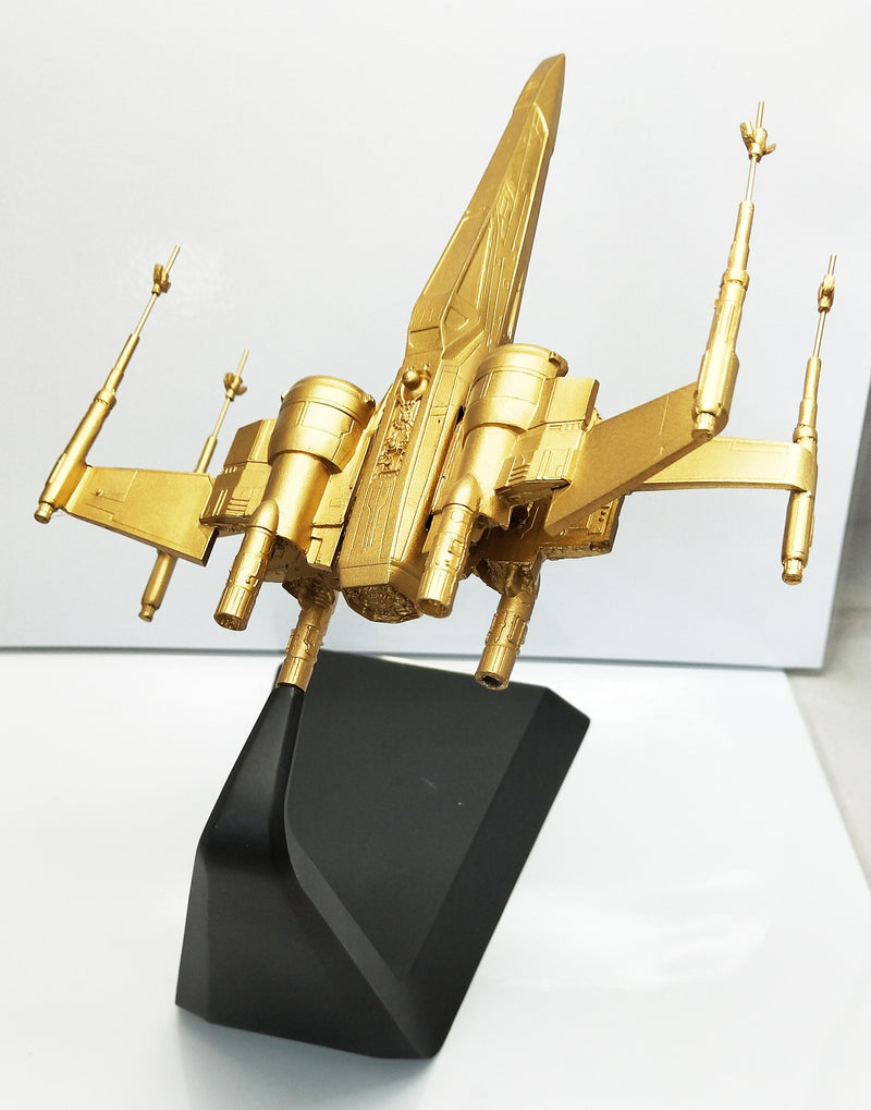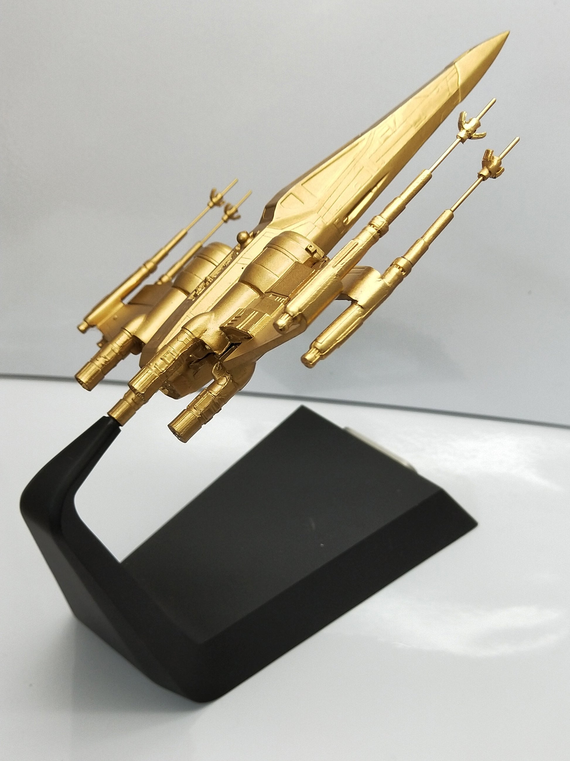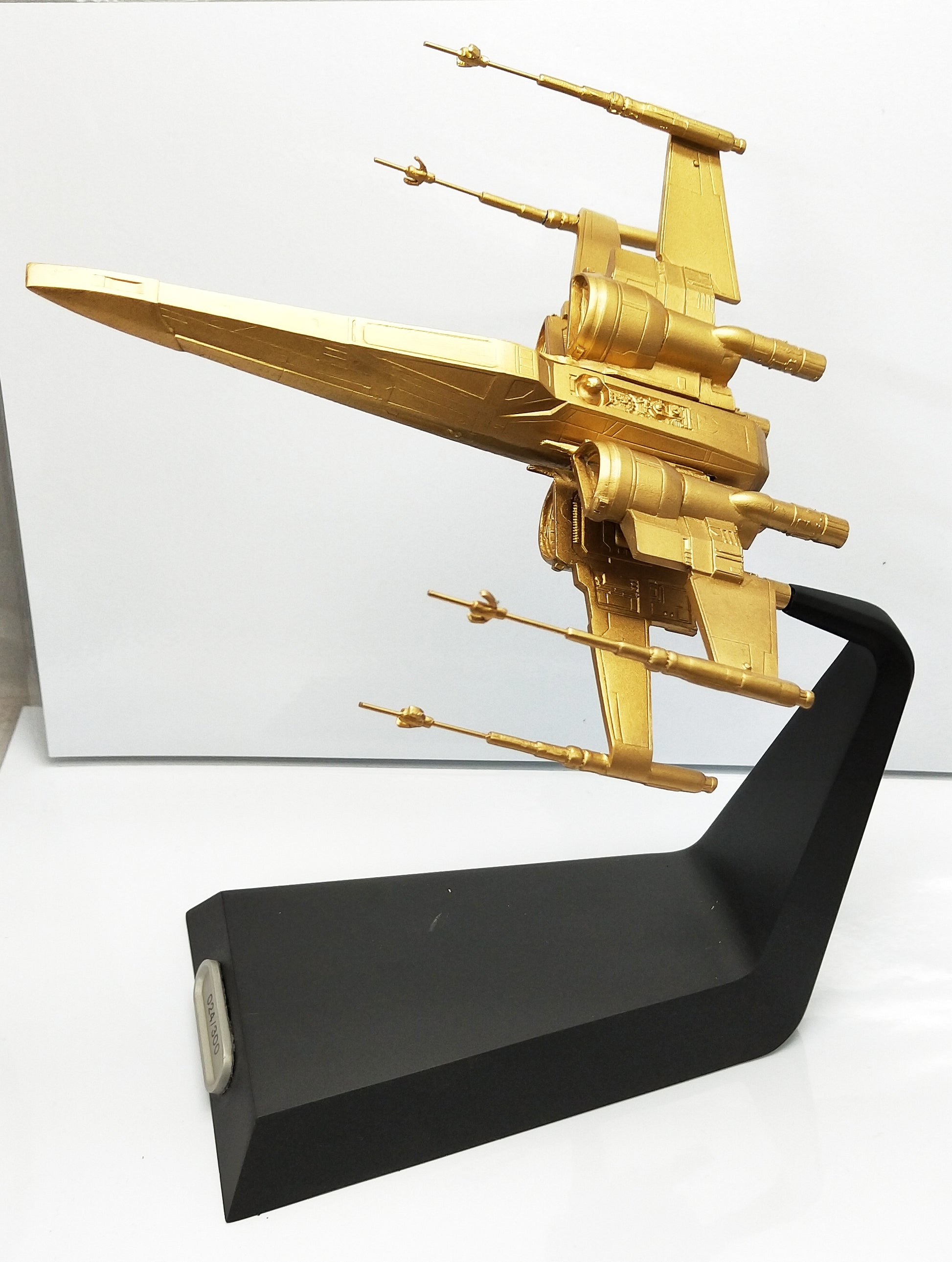 The replica’s S-foil wing assembly, with its unique split nacelles, are articulated to allow closing for normal flight mode or deployed in their trademark ‘X’ attack configuration.